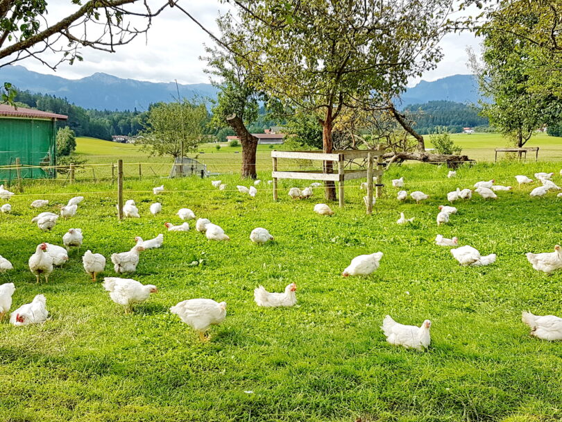 Einer, der solche anbietet, ist der Bauer Thomas Mayer aus Prien-Munzing. Seine Bio-Hendl aber kommen nicht auf Volksfeste, sondern erfreuen in kleinerem Rahmen feste das Volk rund um Munzing im Chiemgau. Bei einem Besuch erläutert uns der Hendl-Vermarkter, warum er angefangen hat und warum seine Hendl nicht nur besser, sondern auch teurer sind. „Angefangen hat es damit, dass ich durch Fernsehen und Literatur von Hendl-Genüssen aus Massentierhaltungen Abstand genommen habe. Und da ich auf dem Hof Platz für einen eigenen Aufwuchs hatte, habe ich mir 30 kleine Gockel besorgt, um sie in natürlicher Umgebung und mit besonders ausgewähltem Futter für den eigenen Jahres-Verbrauch und ohne Verkauf nutzen zu können“. Doch die große eigene Familie und die Verwandtschaft griffen großzügig zu und so blieben dem Bauern selbst nur vier halbe Hendl. Die daraus folgende Entscheidung war, eine neue Aufzucht mit mehr jungen Hähnchen zu starten. Auch da war die Abnahme ohne Werbung schnell geregelt. „Das war dann der Startschuss für den Gedanken, das Ganze in ein Geschäftsmodell überzuführen“ – was auch schnell und gut gelang.