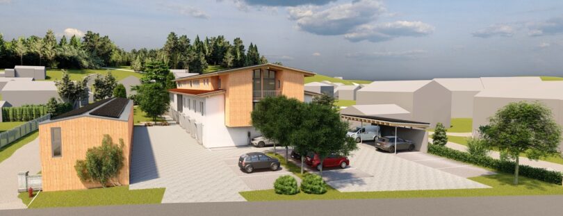 Durch die vertrauensvolle Zusammenarbeit zwischen Gemeinde und Projektentwickler, wird bezahlbarer Wohnraum zu überaus günstigen Kaufpreisen angeboten. Das Besondere ist die Mischung von Wohnraum für Gemeindebürger und Verkauf im freien Markt. Gemeindebürger erhalten zeitlich begrenzt für max. 8 Wohneinheiten noch zusätzlich einen Preisvorteil. Einmalig ist, dass der ganze Bau aus unbehandelten Holz besteht und durch die außen auf das Vollholz aufgeschraubten 24 cm dicken Holzfaserplatten höchste Dämmwerte erreicht. Durch den hohen Dämmstandart (KFW 40) sind zinsverbilligte Gelder abrufbar. Die Außenseite der Wände können sowohl mit einer Holzverschalung versehen oder verputz werden. Da die meisten Baustoffe unbehandelt sind, fällt später kein Sondermüll an. Sie könnten, z. B. nach 100 Jahren, abgebaut und zum Teil wiederverwendet werden.