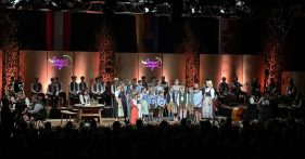 Die Kapelle So&So begeisterte mit ihrem energiegeladenen Klang gepaart mit musikantischer Lässigkeit. Die Besonderheit der Tanzgeiger ist das Zusammenspiel aus Geigen und Bläsern. Das Bekenntnis zu den eigenen musikalischen Wurzeln, die Hellhörigkeit für das Fremde und die Lust, Grenzen zu überschreiten zeichnen dieses Ensemble aus. Die Tassilo Musikanten – eine bunte Mischung aus Oberösterreich, Bayern, Steiermark und Südtirol – präsentierten altes Musikgut sowie neu geschaffene Melodien in facettenreichen Arrangements. Für die drei Sängerinnen von 2/4 oa Gau ist das Singen Lebenselixier. Die Sängerinnen stammen aus dem Innviertel, dem Hausruckviertel und dem Pongau haben vielfältige musikalische Wurzeln. So ist die Wagrainerin Elisabeth Eder die Enkelin von Charlotte Hutter und tritt beispielsweise auch als Engel beim Adventsingen im Großen Festspielhaus auf. Die heimische Fritzmühl Soatnmusi begeisterte mit ihrem Ensemble aus drei Zithern, Gitarre und Kontrabass. Der besondere Name nimmt auf das Fritzmühl Zuhäus’l in Pöham Bezug und die jungen Mitglieder Dominik Meißnitzer und Leitn Toni jjun. waren schon mehrfach mit anderen Ensembles beim Amselsingen zu Gast. Das Vokalensemble „Cantophonics“ des Privatgymnasiums Borromäum unter der Leitung von Moritz Guttmann präsentierte sich mit humorvollem jugendlichem Charme und zeichnete sich durch ausgewogenen Chorklang aus. Dem Vokalensemble wurde der diesjährige Salzburger Volksmusikpreis als Förderpreis zuerkannt und von der Vorsitzenden des Salzburger Volksliedwerkes Anni Haitzmann und Bernhard Strobl von der Vössing-Stiftung auf der Bühne überreicht.