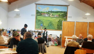 Auch dieses Jahr war Josef Bauer, bekannt als „Pfeiffer Sepp“, der Versteigerer, der mit Witz und Humor durch den Abend führte. Bauer bedankte sich bei allen Helfern und Gönnern, die es durch ihre Sachspenden jedes Jahr wieder ermöglichen, die Versteigerung abzuhalten. Mit seinem Talent brachte er anschließend alle Versteigerungsgegenstände wie u. a. Maschinen, Werkzeuge und unzählige Brotzeiten wie selbstgemachtes Brot oder geräuchertes Fleisch „unter den Hammer“.