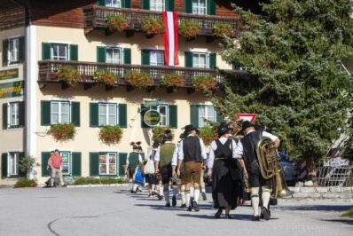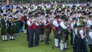 Die Musikkapelle Kuchl aus dem Salzburger Land feierte am Wochenende ihr 150-jähriges Bestehen mit einem großen Fest. Am Festsamstag waren befreundete „Außerbezirks-Kapellen“ geladen, um an Festakt und Festzug mit Defilierung teilzunehmen und anschließend gemeinsam im Zelt zu feiern.