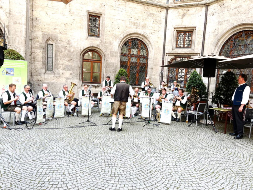 Zu einem Fest nach dem Motto “Blasmusik, Tracht und Poesie” lud der Festring München in den Prunkhof des Münchner Rathauses ein.