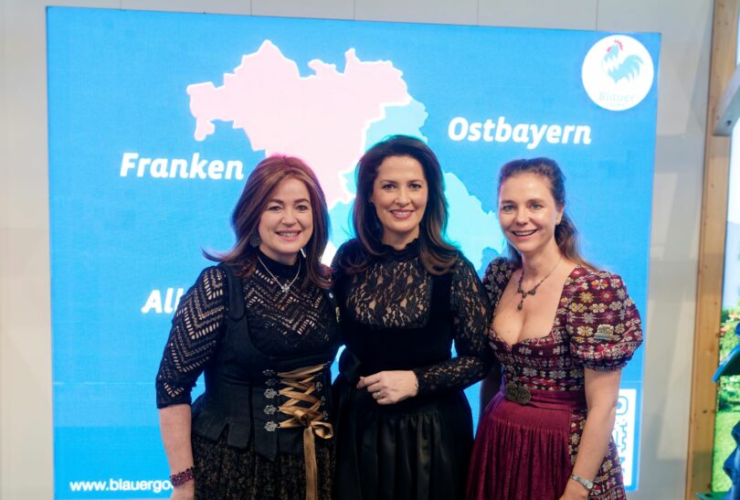 Titelbild: Angelika Soyer, Tourismusministerin Michaela Kaniber und Suanne Wiebekke am Stand des Blauen Gockels in der Bayernhalle auf der Grünen Woche