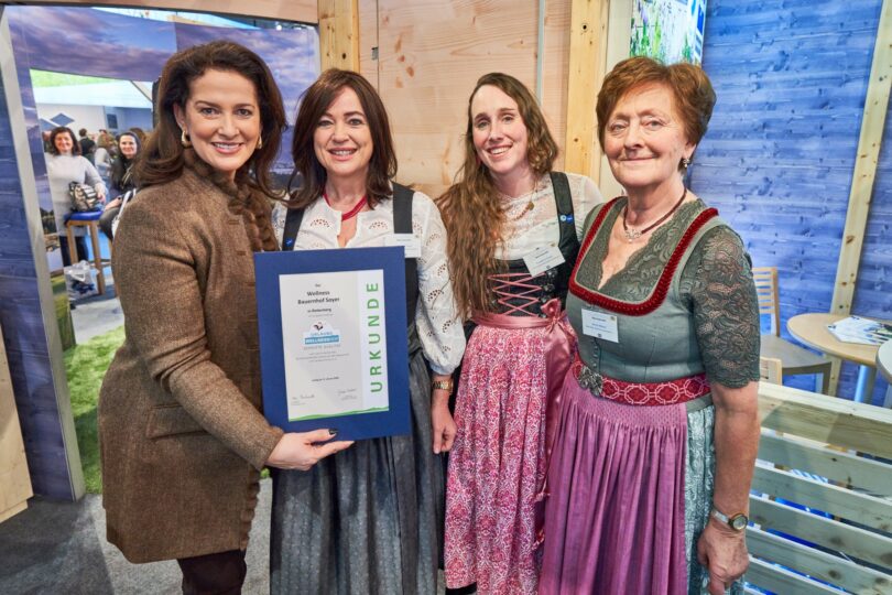 Bericht und Foto: Bayr. Landwirtschaftsministerium – Staatsministerin Michaela Kaniber gemeinsam mit (v.l.n.r.) Angelika Soyer (Tourismusverband Allgäu Bayerisch Schwaben e.V.) , Anni Soyer (Tourismusverband Allgäu Bayerisch Schwaben e.V.) und Gerda Walser (Blauer Gockel).