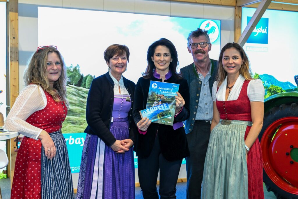 Nach zwei Jahren Coronapause präsentiert sich der Freistaat Bayern in diesem Jahr wieder auf der Internationalen Grünen Woche in Berlin als Land der Genüsse. In der großen Bayernhalle – seit vielen Jahren der Besuchermagnet schlechthin – zeigen über 50 Aussteller den Besucherinnen und Besuchern, was der Süden Deutschlands an kulinarischen Spezialitäten und als gastfreundliche Urlaubsregion zu bieten hat. Ganz besondere Reiseziele präsentiert der Stand des Blauen Gockels, der den Bauernhof- und Landurlaub in Bayern bündelt. Der Landesverband mit seinen über 1.400 Mitgliedsbetrieben bietet unter seiner Marke Blauer Gockel verschiedene Feriendomizile an: Vom einfachen Camping auf dem Bauernhof bis zum preisgekrönten Wellness-Bio-Hof. Auch Agrarministerin Michaela Kaniber schaute am Stand vorbei und blätterte durch den druckfrischen Urlaubskatalog mit Bayerns schönsten Ferienhöfen. „Das Urlaubsangebot auf diesen Bauernhöfen ist einzigartig. Da ist einfach für jeden etwas dabei“, so Kaniber.