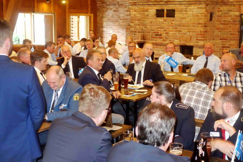 Dass der generelle Wunsch nach optimaler Personal- und Sach-Ausstattung nicht immer erfüllt werden kann, zeigte die Diskussionsrunde, die von Bezirksrat Sebastian Friesinger geleitet wurde. Bürokratie (zum Beispiel muss die Rückführung des reparierten Wasserschutzpolizeibootes vom Chiemsee von Bremerhaven nach Prien von allen Bundesländern wegen des Schwerlastverkehrs-Verordnungen einzeln genehmigt werden, alle Länder haben zugestimmt, Niedersachsen lässt warten), EU-Verordnungen, die Kreisbrandrat Richard Schrank bei Einsatz-Fahrzeugen zu schaffen machen, Wahnsinns-Situationen für Rettungskräfte bei Blockabfertigungen, die Schnelligkeit und Form der Bürger-Warnungen bei Katastrophen, der Mangel an Fachkräften für Rettungs-und Notfälle (vorgetragen von Thomas Neugebauer, stellvertretender Kreisgeschäftsführer und Bereichsleiter Rettungsdienst des BRK Rosenheim), die vielen und oft überflüssigen Fehlalarmierungen bei der Notarzt-Nummer 112 (sowie die oft nicht erreichbaren Kassenärztliche Notrufnummern 116 und 117) waren erste und ernste Themen der Redner aus der Blaulicht-Runde. Auch die durch Corona bedingten Wartelisten bei den Feuerwehrschulen sowie die für die Gemeinde Riedering und für die Stadt Rosenheim vorgetragenen Wünsche, dass Feuerwehrhausbauten im Außenbereich priviligiert behandelt werden sollen, wurden vorgetragen. Dazu der Minister: „Bei Schulungen und Lehrgängen erhöhen wir gerade die Kapazitäten unter anderem mit Baumaßnahmen in Geretsried und Würzburg, die Ausbildungsplätze wurden zuletzt von 250 auf 700 erhöht, aber gegen die demographische Entwicklung können wir nur schwer ankämpfen. Denn die Zahl derer, die derzeit in Pension gehen gegenüber derer, die eine Ausbildung beginnen können ist über 50 Prozent höher. Wir tun was wir können“.