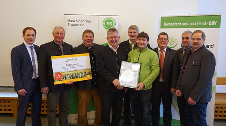 Gemeinsam haben die Bauern in den Landkreisen Traunstein und Berchtesgadener Land in diesem Jahr rund 80 Kilometer Blühstreifen angelegt. Nachdem Josef Freiwang, stellvertretender BBV-Kreisobmann, auf seinen Feldern bereits selbst mit verschiedenen Blumen- und Wildkräuter experimentiert und zahlreiche Landwirte in seiner Heimatgemeinde Seeon von der Aktion überzeugt hatte, warben im Jahr 2017 erstmals auch die Maschinenringe Laufen und Traunstein bei ihren Mitgliedern im Berchtesgadener Land und im Landkreis Traunstein für die Aktion „Blühende Rahmen“ des Bayerischen Bauernverbandes. Die Teilnahme war für die Landwirte unkompliziert: einfach beim Maschinenring melden, Fläche angeben, fertig. Vom Maschinenring wurde dann gemeinsam mit drei Dienstleistern das passende Saatgut beschafft und die Ansaat organisiert. Das Landwirtschaftsamt Traunstein hat sich um eine genaue und rechtssichere Meldung der Flächen gekümmert. So konnten 132 Landwirte für die Teilnahme gewonnen werden. Mit ihrem Engagement bei der Aktion „Blühende Rahmen“ haben sie eindrucksvoll gezeigt, was alles möglich ist, wenn man an einem Strang zieht: Ein tolles Projekt über Verbands- und Landkreisgrenzen hinweg!