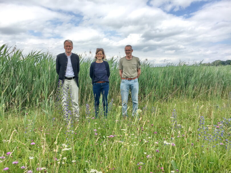Bericht und Foto: Amt für Landwirtschaft – (v.l.) Behördenleiter Dr. Georg Kasberger, Nachhaltigkeitsbeauftragte Isabella Eicher und Landwirt Ludwig Oberlinner freuen sich über den gelungenen Blühstreifen am Penzinger Seebach