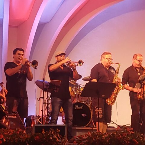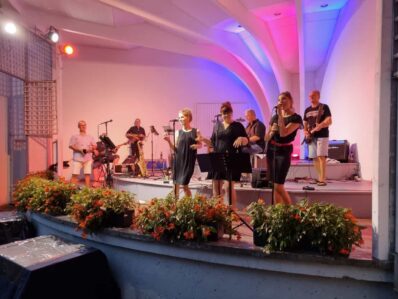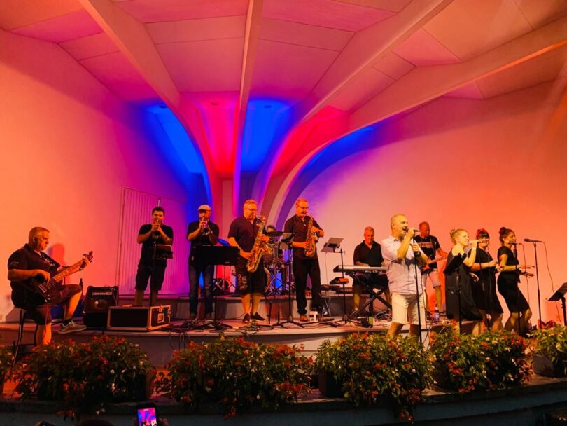 Die zwölfköpfige Band Blues Blosn war am heutigen Samstag bei der Konzertreihe Kultur im Park im Brunnenhof des Kurhauses Bad Aibling zu Gast und spielte die schönsten und groovigsten Soulklassiker, gemischt mit Blues und Rock.
