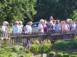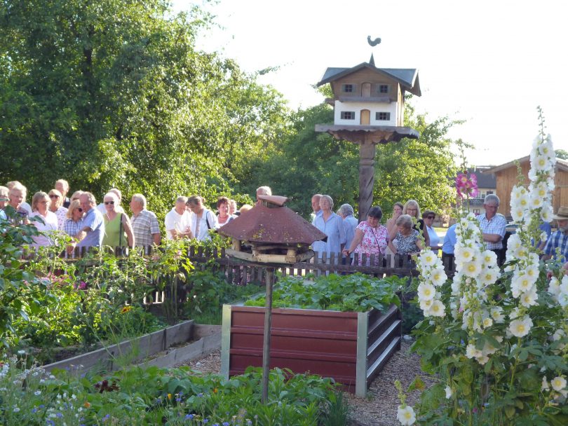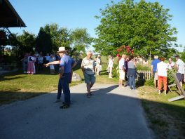Sommerlicher Höhepunkt für den Obst- und Gartenbauverein Prien-Rimsting ist die traditionelle Ortsteilbegehung mit anschließendem Gartenfest. Rund 100 Mitglieder nahmen daran teil und erfreuten sich an der Führung durch den Garten der Familie Stöffl vom Mojer-Anwesen in Hochstätt. Diese nahm nach der Begrüßung durch Vorstand Felix Perl der Baumwart des Vereins, Christian Steinbichler vor. Seine Themen und Tipps waren unter anderem: die Bekämpfung der Schneckenplage: die Tigerschnecken grau und erkennbar am Leopardenmuster und Weinbergschnecken sind natürliche Feinde. Einheimische Vögel, wie Spatzen, Meisen fressen zunehmend die Raupen des Buchsbaumzünslers. Weiters erläuterte er Wachstum/Krankheiten bei Spalierbäumen (Kräuselkrankheit) und gab Tipps zum Schnitt, auch bei dem üppig an der Hauswand wachsenden Weinstock. Im nächsten Garten (Fam.Bichler) gab es im Besonderen den Reichtum an Tomaten, Paprikas und weiteren Gemüsepflanzen in Kästen zu betrachten.