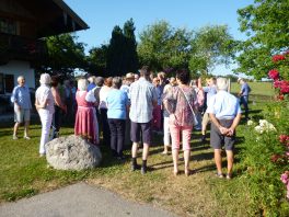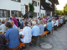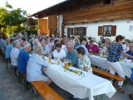 Nach rund eineinhalb Stunden Rundgang folgte im Hof des Mojer-Anwesens das Gartenfest; dabei bedankte sich der Verein bei den Hausherren, die diesen schönen Platz zur Verfügung stellten. Die passende Bewirtung erfolgte durch den Gartenbauverein; ein schöner Sommerabend mit einem herrlichen Blick über den Chiemsee in die heimische Bergwelt vollendete die gelungene Veranstaltung.