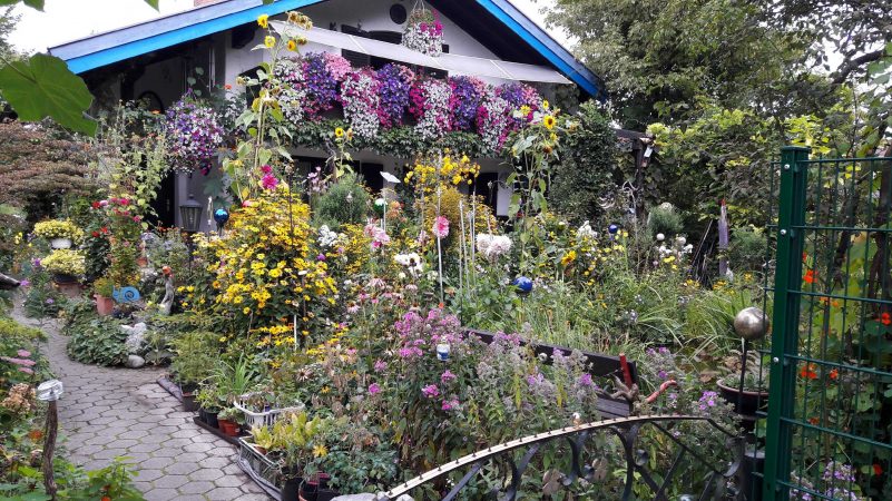 Bei Spaziergängen abseits der Hauptverkehrsstraßen lässt sich oftmals Schönes entdecken – so wie diese Blumen- und Gartenpracht eines Hausbesitzers am Priener Eschenweg. Vielfalt, Aufwand und Gesamtbild machen den Blick zum Haus und in den Garten mit einer kleinen Brücke über einen Teich zum optischen Genuss. Gerade beim heurigen Hochsommer haben die Bewohner viel zu tun gehabt, damit die Farbenpracht bis jetzt gehalten hat nach dem Motto: „Genuß nach dem Gießen“.
