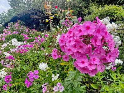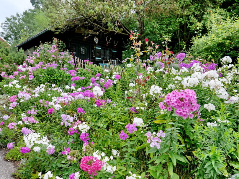 Ein paradiesisches Kleinod zeigt sich derzeit noch in der Bernauer Engelländerstraße wenn die Blumenart Phlox (Flammenblumen) den Vorplatz für eine kleine Gartenhütte dominiert.