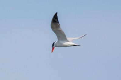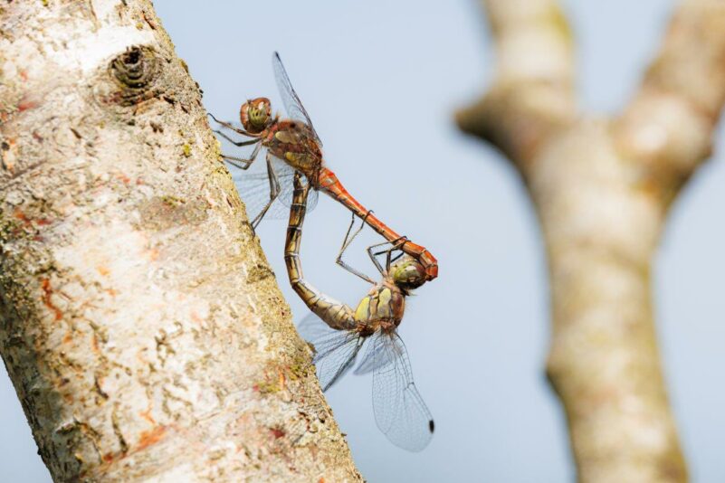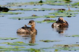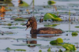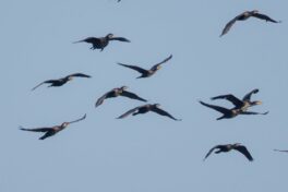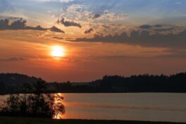 Von einem kräftigen Morgenrot begleitet, welches beim Sonnenaufgang den Pellhamer See in mystische Licht tauchte, machte ich mich auf den Weg zum Chiemsee, um den wiederholt beobachteten Fischadler zu fotografieren. Das Warten auf den erhofften Adler verkürzten zahlreiche Fotomotive unmittelbar vor dem Beobachtungsturm. Die kleinen Zwergtaucher jagten eifrig Wasserinsekten, Bachstelzen versuchten im Rüttelflug Kleinlibellen zu fangen. Jagdglück hatte auch ein Mittelmeermöwe, die im Sturzflug eine beachtlich Schleie erbeutete. Etwa 50 Kormorane landeten im Laufe des Vormittags in der Bucht. Reiherenten schluckten mit Mühe große Turmdeckelschnecken, welche sie tauchend erbeuteten. Eine Rohrweihe suchte wiederholt entlang des Ufers ebenso, wie eine von einem Jungvogel begleitete adulte Raubseeschwalbe, nach Beute. Bei der Heimfahrt machte ich noch einen Abstecher zum Grundlosen See, wo zahlreiche Blutrote Heidelibellen spektakuläre Paarungsräder bildeten.