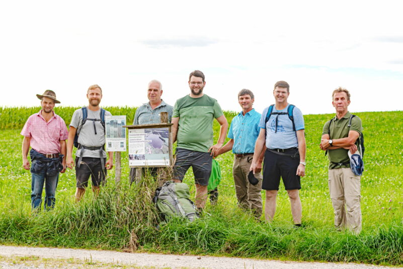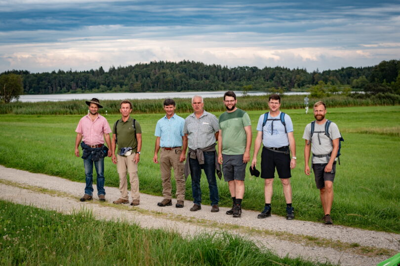 Am fünften Tag der diesjährigen Sommerwanderung, die unter dem Motto „vom Watzmann bis hoam“ steht, traf sich Becher mit Vertretern des boden:ständig-Projekts Pelhamer See. Gemeinsam mit Thomas Kronast vom Amt für Ländliche Entwicklung Oberbayern, Alois Loferer, Erster Bürgermeister des Marktes Bad Endorf, Josef Kink, Zweiter Bürgermeister der Gemeinde Höslwang, dem Seenmiteigentümer Georg Luber und den örtlichen Landwirten Rupert Hilger, Rupert Kriechbaum, Simon Buchner und Josef Linner wanderte Becher durch Bayerns ältestes Naturschutzgebiet, nämlich die Eggstätt-Hemhofer Seenplatte, und durch das Einzugsgebiet des Pelhamer Sees. Hier informierte er sich über die Ziele, Herausforderungen und Erfolge des Projekts und lies sich die bereits umgesetzten aber auch noch geplanten Maßnahmen vor Ort zeigen.