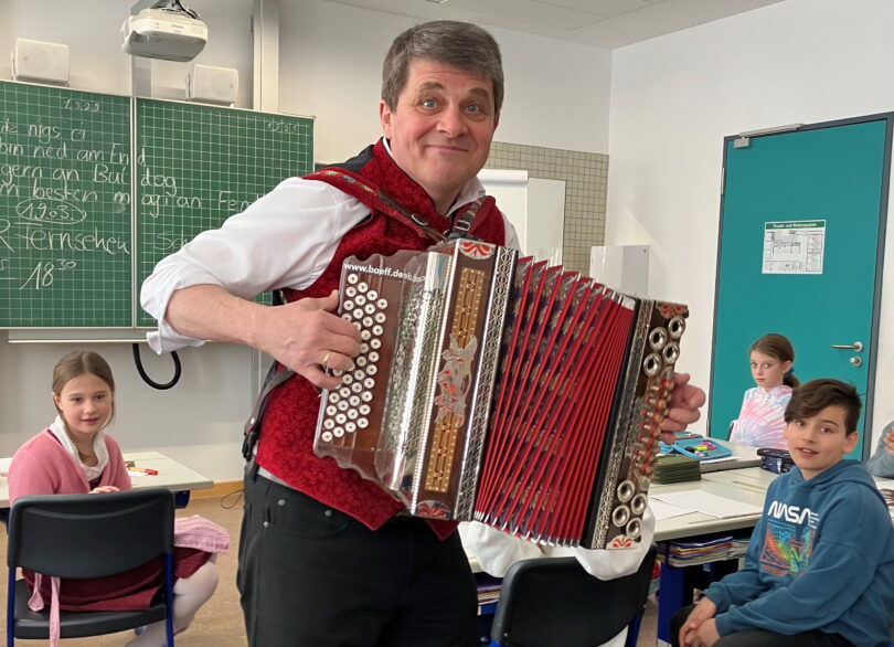 BR Fernsehen: Sonntag 19.03.2023 „Schwaben und Altbayern“ von 17.45 – 18.30 ( 2. Beitrag) – Gstanzlwerkstatt mit Bäff in der Schule – Autorin: Traudi Siferlinger