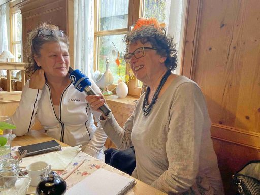Evi Strehl ist mit ihrem Aufnahmegerät auf den Samerberg gefahren und hat sich vom Toni dessen Heimat zeigen lassen. So kamen weitere Interviews zustande, z.B. mit Bürgermeister Georg Huber und Tonis Nachfolgerin in der Gästeinformation. Danach zeigte ihnen der Seniorchef von Schuh Auer den Laden und Werkstatt, incl. neuer “Dehnmaschine” für zu eng gewordene Lederhosen (Corona lässt grüßen!). Außerdem kam der Entenwirt Peter Schrödl zu Wort, wie auch der ehemalige Trachtenvereins-Vorstand Hans Sattelberger, der mit seiner Singpartnerin einige Jodler beisteuerte. In den Ortsteil Hartbichl zu Helga Bauer sind Evi und Toni auch noch gefahren, auch sie hat weder ihre Schwegel-, noch ihre Töpferkünste verlernt. Der 100-jährige Xare Stadler erzählte seine Lebenserinnerungen ins Mikrofon, und zuletzt besuchten sie noch eine Probe der Musikkapelle Samerberg mit ihrem Dirigenten Benedikt Paul. Umrahmt werden die Gespräche von Musik- und Gesangsgruppen vom Samerberg und drumherum.