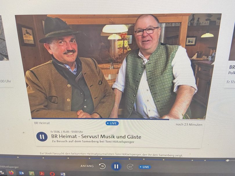Am Freitag, 17. Juni hat der digitale Radio- und Volksmusiksender BR Heimat eine zweistündige Sendung vom und über den Samerberg gesendet. Nachgehört werden kann diese Sendung auf dem Podcast-Kanal von BR Heimat unter der Adresse: www.br.de/mediathek/podcast/sender/br-heimat.