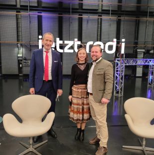 Der Start zum Pandemiebeginn und auch der Mut, als Jungunternehmer ganz was Neues anzupacken war für den Bayerischen Rundfunk guter Grund Vanessa und Jonas zur jüngsten Bürgersendung „Jetzt red i“ ins Münchner Studio einzuladen. Die beiden Gastronomen waren auch gleich die ersten Gäste, die an Bayerns Wirtschaftsminister und stellvertretenden Ministerpräsidenten Hubert Aiwanger sowie an die Grünen-Fraktions-Vorsitzende Katharina Schulze Fragen stellen konnten. Für den Schützenwirt war klar, dass er nicht mit über Vergangenes und auch weniger über die momentane Situation sprechen wollte. „Die Zukunft mit Themen, Strategien und Lösungsansätzen für einen Gastronomen, wenn sich Omikron und Corona immer wieder unterschiedlich zeigen, wollte ich ansprechen. Wie können wir kurz- und mittelfristig reagieren, wie schaut unsere Perspektive bis zum Frühjahr aus? So wie es jetzt ausschaut, müssen wir nicht nur die Feiertagszeit, sondern auch den Januar noch opfern und geschlossen bleiben!“ – so Jonas Spensberger.