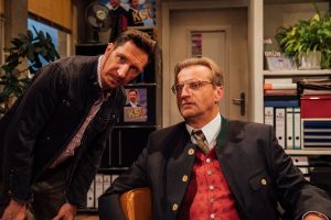 Szenenbild “Der Beste für die Besten”. von links Oberbürgermeisterkandidat Adam Baumer (Philipp W. Wilhelm) und der Landtagsabgeordnete Jakob Hirschauer (Berthold Kellner).