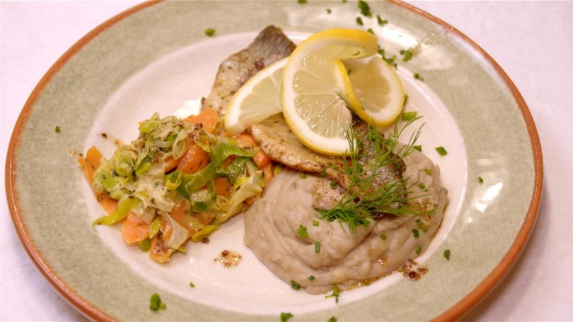 Catharinas Weihnachtsmenü besteht aus selbstgefangenem Fisch aus dem Nachbarort: Es gibt Tatar vom Saibling mit hausgemachtem Brot. Als Hauptgang Saibling im Steinpilzmantel an Kartoffelmaronenpüree und Karotten-Lauch-Gemüse. Zum Nachtisch serviert sie traditionelle Rohrnudeln mit Apfel-Hollerkoch, dazu Holundersorbet.