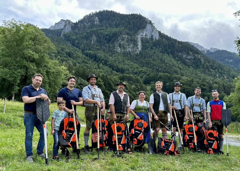 Beim Bergwachtfest übergab Lindon Pronto im Beisein von Bürgermeister Simon Frank sowie den beiden Feuerwehrkommandanten von Aschau und Sachrang Tobias Brinkmann und Stefan Singhartinger die Brand-Bekämpfungs-Ausrüstungen an die Bergbauern Max Pfaffinger jr. aus Ausserwald, Almbauer auf der Auer- und Tristmalnalm am Spitzstein, Wast Pertl aus Innerwald, Almbauer der Sulzingalm am Geigelstein, Martina Bauer aus Stein, Sennerin auf der Steinlingalm an der Kampenwand und Andreas Schmid aus Aschau, Almbauer auf der Elandalm. Weitere Sätze werden Sepp Gröbmayer, Almbauer von der Rossalm am Geigelstein, die Almbauern von der Hofbauernalm und die Bayerischen Staatsforsten erhalten. Die Übergabe soll erst der Anfang in dem Demonstrationsgebiet im Priental sein und es werden sicher noch weitere solche Sätze organisiert und verteilt.