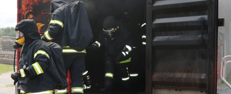 „Es war ganz schön warm da drinnen, ich schwitze, ohne dass ich mich körperlich angestrengt hätte. Wenn ich mir jetzt noch vorstelle, dass ich jemand aus einem so verrauchten Zimmer, das voll brennt herausziehen müsste – das geht schon voll an die Grenzen“, fasste einer der Lehrgangsteilnehmer seine Eindrücke aus dem Brandübungscontainer am Wildenwarter Feuerwehrhaus zusammen. „600 bis 800 Grad an der Zimmerdecke und immerhin noch 150 Grad auf der Höhe des Helmes, das treibt den Schweiß gerade zu hervor, ein Saunagang ist nichts dagegen“.
