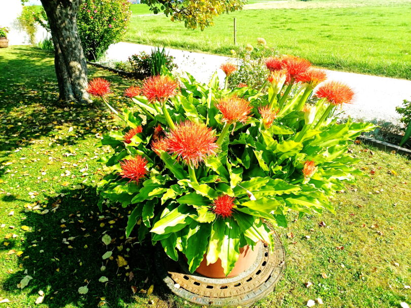 Dieses wunderschöne Exemplar einer exotischen rot-orangefarbenen Pflanze mit etwa 23 großen, runden Blüten blüht im Garten von Hans Irlacher im Ortsteil Lauter in Surberg.