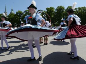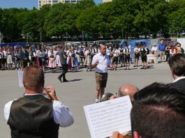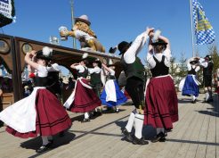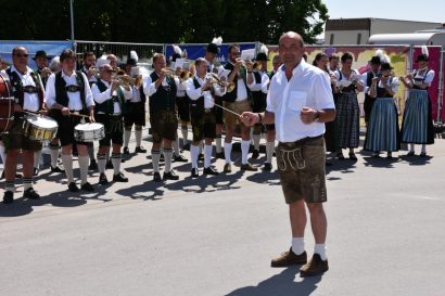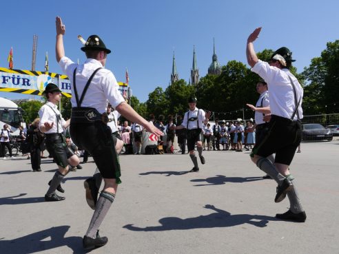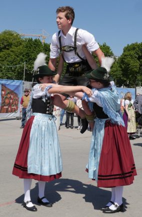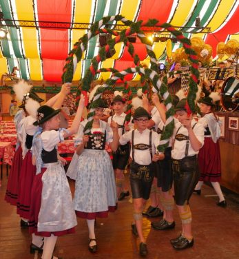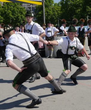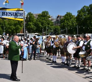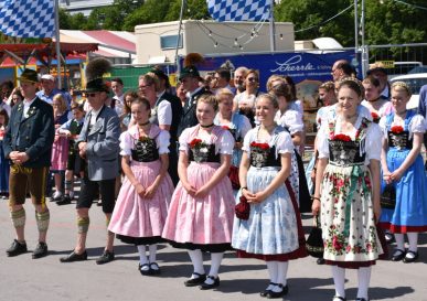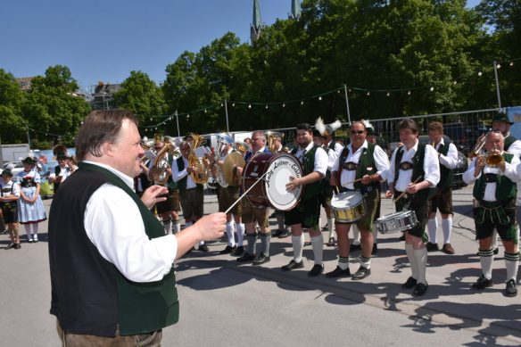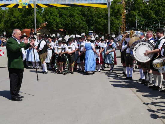Der Nachmittag stand ganz im Zeichen der Blasmusik. „Aufgspuit! hieß es in der Festhalle Bayernland und im Hippodrom. Gigi Pfundmayr sang in der Festhalle Bayernland Münchner und Wiener Lieder. „Auftanzt“ hieß es auf dem ganzen Festgelände, bei sommerlichen Temperaturen konnten die Besucher den Auftritt der Trachtengruppen bewundern.