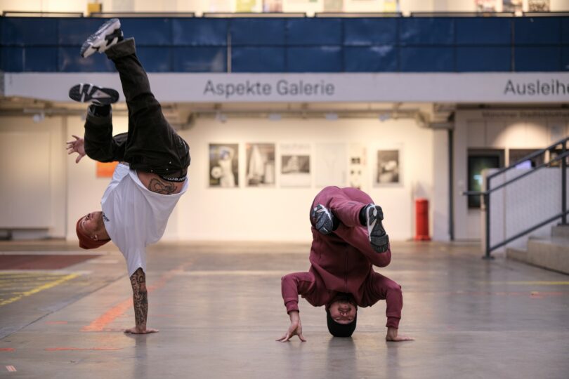 „Das ist eine Wahnsinns-Kulisse, die uns Straßenkünstler*innen einen ganz eigenen Spirit und viel Energie gibt“, sagt Breakdancer Aloun Phetnoi Ferzandi. Er leitet zwei Tanzstudios in München und bringt mit seinem Team erstmals ein Dance-Battle in den Gasteig HP8.
