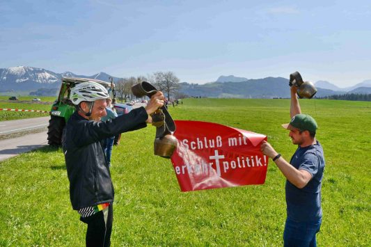 Auch in Unterimmelberg fanden sich Frauen und Männer ein, um lautstarkt gegen die Brenner-Nordzulauf-Planungen zu demonstrieren – davon diese aktuellen Bilder.