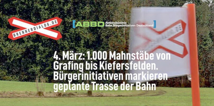 Rosenheimer Bürgerinitiativen markieren geplante Hochgeschwindigkeitsstrecke der Bahn