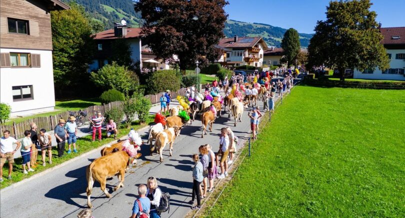Die Almabtriebe und Almfeste in Brixen im Thale, Kirchberg in Tirol und Westendorf zogen an einem sonnigen Herbsttag erneut viele neugierige Zuschauer an. Dieses bunte und musikalische Spektakel mit Live-Musik und regionalen Spezialitäten unterstrich die Bedeutung dieser traditionsreichen Veranstaltung. Bereits in den frühen Morgenstunden wurden die Kühe mit Glocken, farbenfrohen Gestecken und Blumen geschmückt, bevor sie von den Almen hinab ins Tal zogen. Damit geht die Almzeit zu Ende, und die Almhütten der Sennen wurden winterfest gemacht, um bis zum nächsten Frühjahr geschlossen zu bleiben.