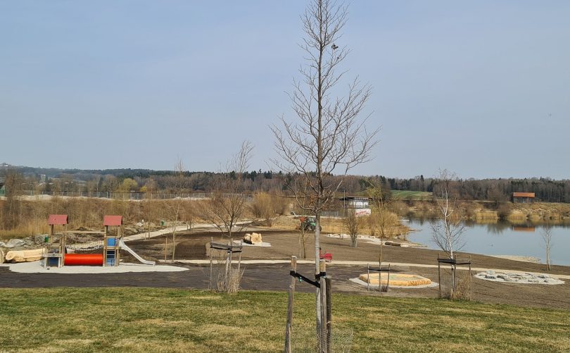 Zusammen mit dem Bauhof wurde der Badebereich und die Uferböschung in Form eines seichteren Zugangs für die Kinder optimiert und das Ufer nach Süden zurückgezogen. Außerdem sind Bäume als künftige Schattenspender gepflanzt und das Spielgerät vom ehemaligen Wiesenstraße-Areal einer neuen Bestimmung zugeführt. „Nachdem dort ein neues Gerät installiert worden war, haben wir dieses im Bauhof aufgehoben und können es nun richtig gut für die Kinder bei einem Badebesuch an den Höglinger Weihern nutzen“, so Göhly und Spielplatz-Referent Richard Linke unisono. Gerade Letzteren erreichten immer wieder Anrufe von Bürgern mit der Bitte um einen Sandplatz, Spielgeräte und Bespaßungsmöglichkeiten für die jüngsten Bruckmühler Bürger während des Aufenthalts an den Weihern. Auch ein großer Sandkasten ist bei dieser Maßnahme entstanden und rundet das Angebot ab.