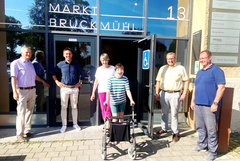 Per Knopfdruck öffnet sich ab sofort die Eingangstüre am Bruckmühler Rathause im Gewerbepark BWB (Gebäude 13). Auf Initiative von Christiane Grotz (Behindertenbeauftragte der Gemeinde Bruckmühl und des Landkreises Rosenheim) hat das Bruckmühler Rathaus nun den inklusiven Eingang. Rollstuhlfahrer und Personen mit Rollator kommen so einfach durch die Tür.