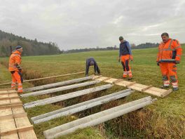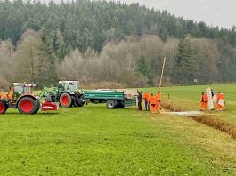 Der nächste Winter kommt bestimmt und sollte auch noch reichlich Schnee kommen, dann sind in der Marktgemeinde Prien beste Voraussetzungen für den Langlaufsport. Die vom Priener Bauhof in Abstimmung mit den Grundbesitzern getroffenen Vorbereitungen betreffen auch vier Brücken bei Bach-Übergängen. Diese sind bei Elperting gleich nach dem Start am Wanderparkplatz, nahe Mupferting sowie zweimal beim Stettener Bach zwischen den Orten Gaishacken, Stetten und Siegharting. Unsere Aufnahmen entstanden beim Erstellen einer Brücke über den Stettener Bach zwischen Gaishacken und Stetten durch Mitarbeiter des gemeindlichen Bauhofes.
