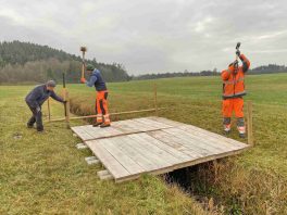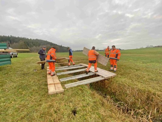 Foto: Hötzelsperger – Priener Bauhof erstellt für die Langlaufloipe eine Brücke über den Stettener Bach.