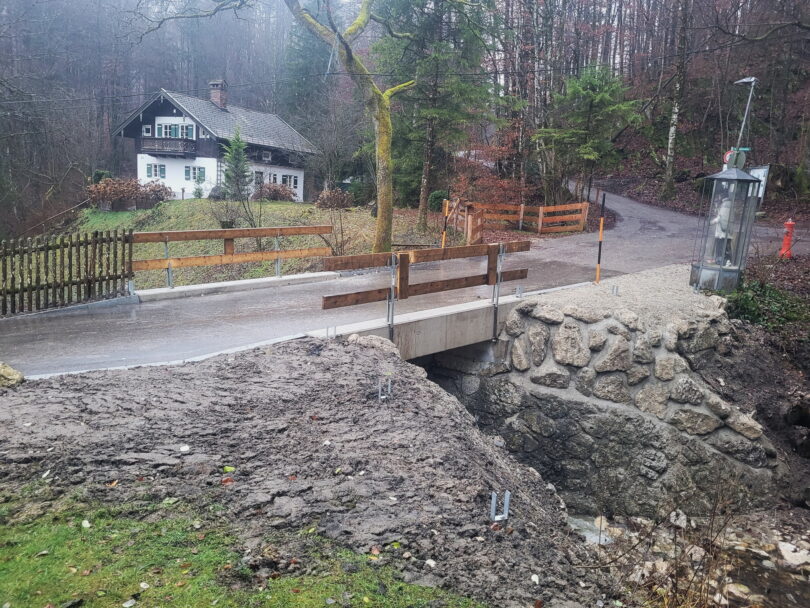 Der Zustand der Brücke Rabenstein in der Zellerhornstraße in der Gemeinde Aschau i. Chiemgau wurde bei der letzten Bauwerksprüfung als ungenügend eingestuft. Die daraus resultierenden Erneuerungsarbeiten wurden in Zusammenarbeit mit dem Ingenieurbüro Stief & Kurz aus Rosenheim und der Baufirma Dörfl aus Aschau i.Chiemgau umgesetzt.