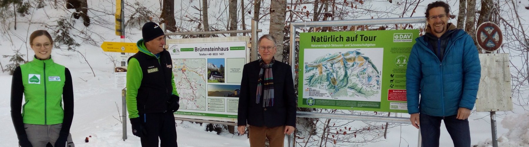 mit Carmen Neumann an den Ausgangspunkten über naturverträgliche Skitouren aufklären wird. Dr. Georg Kasberger begrüßt ausdrücklich diese Aktivitäten des Alpenvereins und appelliert an alle Erholungssuchenden und Freizeitsportler, die Empfehlungen der Skitourenkarte zu befolgen. Nach seiner Erfahrung hat die Verringerung der Störungen des Wildes auch positive Effekte auf den Schutzwald. Ruhige Wildtiere benötigen unterm Strich weniger Nahrung als gestresstes Wild, was den Verbiss an Jungpflanzen insgesamt in dem Gebiet reduziert. Das ist dort besonders wichtig, da sich hier viele Steilhänge befinden, in denen Förster und Waldbesitzer für die Pflege des Schutzwalds verantwortlich sind.