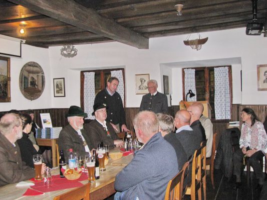 In der vollbesetzten Ziegler-Wirtsstube im Heimathaus in Traunstein stellte  Günter Reichelt sein neuestes Buch über die liebenswerten Begegnungen der bayerischen Gebirgsschützen und auch einer großen Anzahl von Menschen in Bayern mit Papst emeritus Benedikt XVI. vor. In eindrucksvollen Bildern und Texten berichtet Günter Reichelt über die sehr persönlichen Begegnungen der Besucher mit Papst emeritus Benedikt XVI., die anlässlich verschiedenster herausragender Anlässe die Reise nach Rom und in den Vatikan angetreten haben. Besonders die liebenswerten Begegnungen der bayerischen Gebirgsschützen zunächst mit dem Kardinal und später mit dem Papst werden im neuen Buch dargestellt. „Papst Benedikt spricht uns als Freunde an und es ist immer wieder eine Ehre und Freude dem Papst in Rom nahe sein zu können“, so der Autor. Hinzu kommen noch aufschlussreiche Schilderungen von Stadtspaziergängen im antiken und christlichen Rom, aber auch interessante Ausführungen über die päpstliche Schweizergarde und das Jahr der Barmherzigkeit sowie das Erleben der Osternacht im Petersdom. Ein Rückblick auf die Kinder- und Jugendzeit v on Joseph Aloisius Ratzinger in Marktl am Inn, Tittmoning und Traunstein rundet das Ganze ab. Dass das Grußwort vom Bischof von Regensburg, Bischof Rudolf Voderholzer, stammt, freute Günter Reichelt besonders und er bezeichnete es als eine „besondere Ehre“.