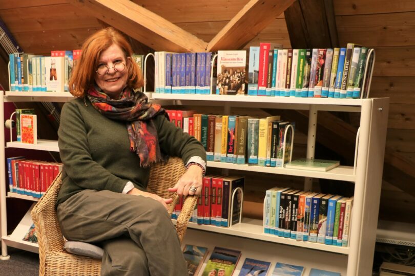 Bericht und Foto: Prien Marketing GmbH – Prof. Dr. Elke Schwinger leitet das Philosophische Café in den Räumlichkeiten der Bücherei Prien.