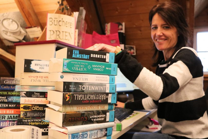 Foto: Prien Marketing GmbH: Dieser Tage werden viele Neuerscheinungen von Büchereimitarbeiterin Bianca Radlinger für die Ausleihe vorbereitet.