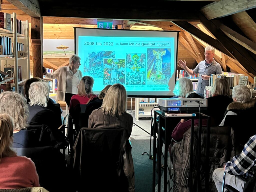 Prien – Am Freitag, 28. April 2023 waren alle Plätze in den Räumen der Bücherei Prien voll besetzt, als Hermine-Marie Zehl und Joachim Wurster über das Thema „Wie geht es weiter in diesen Zeiten“ referierten. Beide sind in Prien ansässig und als beratende Astrologen tätig. Sie machten die Zuhörenden zunächst damit vertraut, was mit der „Qualität von Zeit“ gemeint sei. Dem folgten interessante Informationen dazu, dass die Astrologie als jahrtausendealte Erfahrungswissenschaft in der Lage ist, Zeitqualität zu erkennen und zu deuten. Mit eindrucksvollen Bildern lenkten die Vortragenden den astrologischen Blick auf die Geschehnisse der Jahre ab 2008, insbesondere der letzten drei Jahre, die den jetzigen Wandel eindrucksvoll einläuteten. Anschließend gaben sie einen umfassenden Ausblick auf diese Zeiten des Umbruchs, die zirka 20 Jahre andauern werden. „Maßgeblich beteiligt ist Pluto, der in den Wassermann gewandert ist. Nichts werde wieder so, wie wir es gewohnt waren“, so die beiden Astrologie-Experten. Zehl und Wurster schlossen den Vortrag damit ab, wie mit Hilfe des persönlichen Geburtshoroskops die eigenen, ganz persönlichen Talente und Fähigkeiten erkannt werden können. Und wie dies eine Hilfe dabei sein kann, die bevorstehenden Zeiten nicht nur zu bewältigen, sondern positiv zu gestalten.