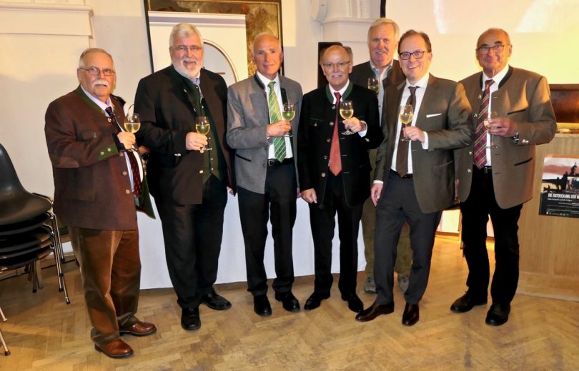 Bildunterschrift: v.l. Walter Heußler (Kreisjagdverband), Sebastian Friesinger (Landesvorsitzender Bayernbund), Prof. Dr. Albert Göttle (Präsident Landesfischereiverband), Bezirkstagspräsident Josef Mederer, rechts: Franz Geiger (Präsident Fischereiverband Oberbayern)