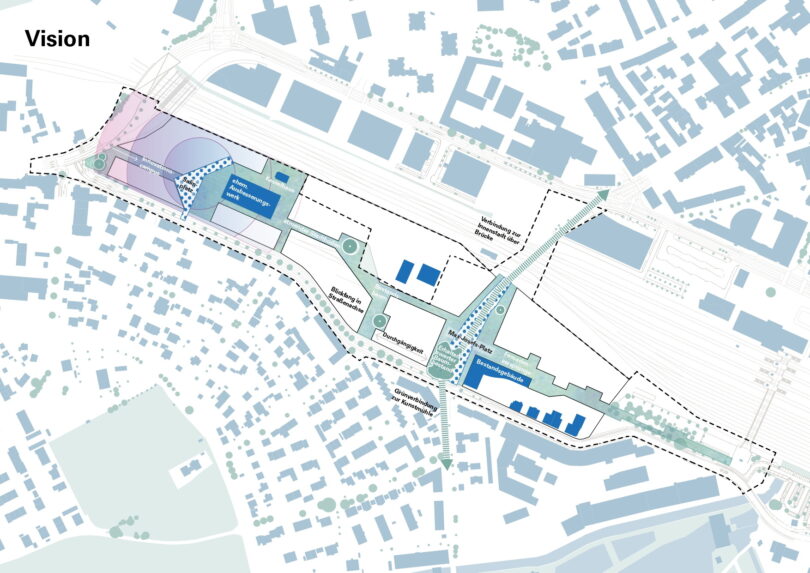 Der Stadtrat hat im Juni 2024 den ersten Zwischenergebnissen der Planung mit den grundlegenden Leitlinien für die Quartiersentwicklung zugestimmt. Wichtige Bestandteile für ein attraktives neues Stadtquartier sind u.a. auch der Bau einer neuen Geh- und Radwegbrücke über das Bahnhofsareal sowie auch das Ziel eines Erhalts des ehemaligen Bahn-Ausbesserungswerks, in dem eine Mischung gewerblicher und kultureller Nutzungen angedacht ist.