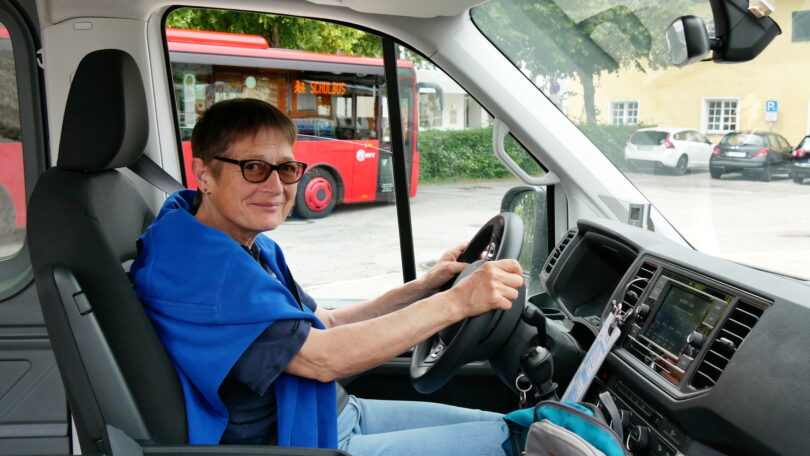 Auch Bichler wurde durch einen Artikel auf die besondere Buslinie aufmerksam. Das war vor über 20 Jahren. Der BBC ging im März 2003 in Betrieb. Anfangs fuhr Bichler nur Vormittagsschichten, wenn die beiden Kinder in der Schule waren. Die sind inzwischen erwachsen, deshalb kann die 61-jährige, selbstständige Biologin heute auch die Nachmittagstouren übernehmen, die um 13.15 Uhr in Amerang beginnen. Am Wertstoffhof, wo der Neunsitzer mit automatisch öffnender Seitentür und Automatikgetriebe auch seine Garage hat, ist Schichtwechsel. Ab 8.25 Uhr ist der Bürgerbus montags bis freitags nördlich des Chiemsees unterwegs.