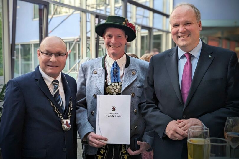 In den Reden des ersten Bürgermeisters Nafziger und des Landrats Göbel wurde betont, dass nicht bekannt ist, wie viele Stunden Josef Stöckl in den vergangenen Jahrzehnten dem Brauchtum gewidmet hat. Ohne ihn wäre die Maibaumtradition in der Gemeinde heute aber kaum mehr vorstellbar, so Nafziger weiter. Bereits im Alter von 12 Jahren begann er beim Aufstellen des Maibaums mitzuhelfen. Seit 2006 trägt er die Verantwortung dafür und seit 31 Jahren ist er Mitglied des Trachtenvereins “D’Almarösler”, davon 25 Jahre als erster Vorplattler und seit 2017 als erster Vorsitzender. Landrat Göbel merkte an, dass die Verleihung der Bürgermedaille an solche Personen verdeutlicht, worauf Planegg Wert legt – eine soziale Gesellschaft, die auf ihre Nachbarn und Mitmenschen achtet und gleichzeitig ihre Tradition und Geschichte pflegt und bewahren möchte.