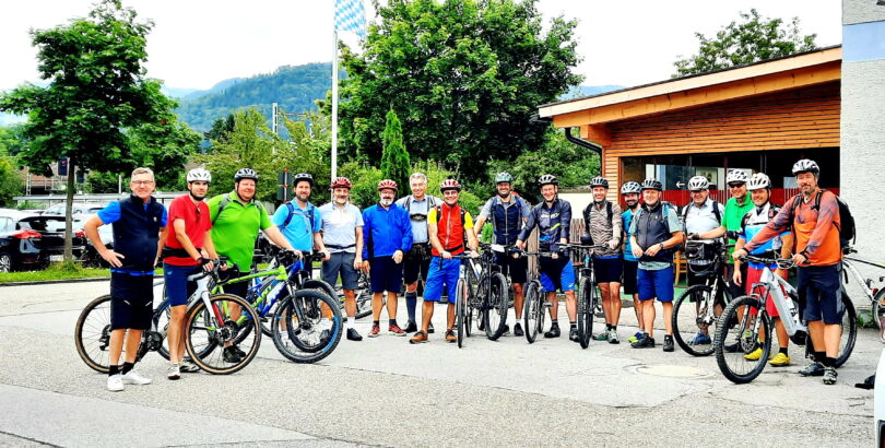 Durch das Inntal führte die diesjährige Fahrradexkursion der Bürgermeister vom Landkreis Rosenheim. Dabei legte die rund 20köpfige Gruppe der Kommunalpolitiker über 50 Kilometer zurück und war in sieben Gemeinden zu Gast: Oberaudorf, Kiefersfelden, Nußdorf/Inn, Neubeuern, Raubling, Brannenburg, Flintsbach und Reisach hießen die Stationen.