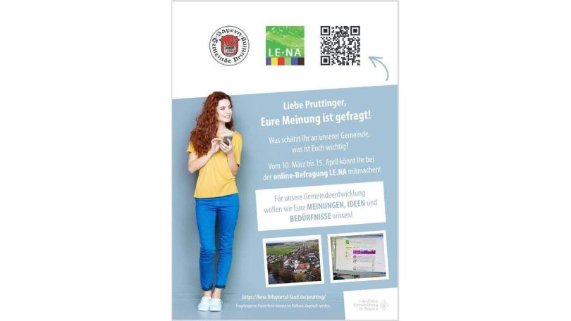 Ab sofort läuft die große Pruttinger Bürgerumfrage. Bis 15. April können sich alle Pruttinger Bürgerinnen und Bürger online zum aktuellen Entwicklungsstand der Gemeinde Prutting äußern. Wünsche, Ideen und Anregungen können hier ebenfalls gerne mitgeteilt werden. Alternativ zur Onlinebeteiligung können Sie sich im Rathaus gerne einen ausgedruckten Fragebogen abholen.