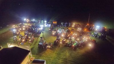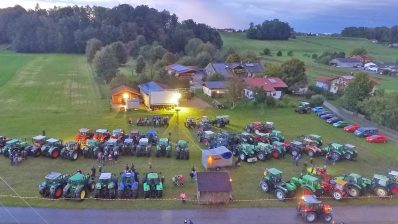 Ein Bulldog-Kino im Altlandkreis Wasserburg am Inn: Zwei Abende lang stand Attelthal in der Gemeinde Edling im Mittelpunkt der Kino-Freunde – und zwar in besonderer Art! Vom Bulldog aus gab’s den Blick auf die Kino-Leinwand! Zu sehen war die Komödie von Sebastian Schindler aus Soyen: Mit dem Rückwärtsgang nach vorn – und mit so manchem Mitspieler aus dem Attelthaler Raum …
